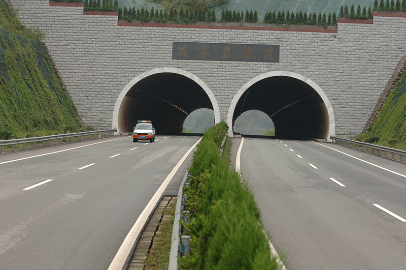 滬蓉國道主干線湖北省宜昌(長江大橋)至長陽(白氏坪)公路殷家巖雙聯拱隧道,長186m。