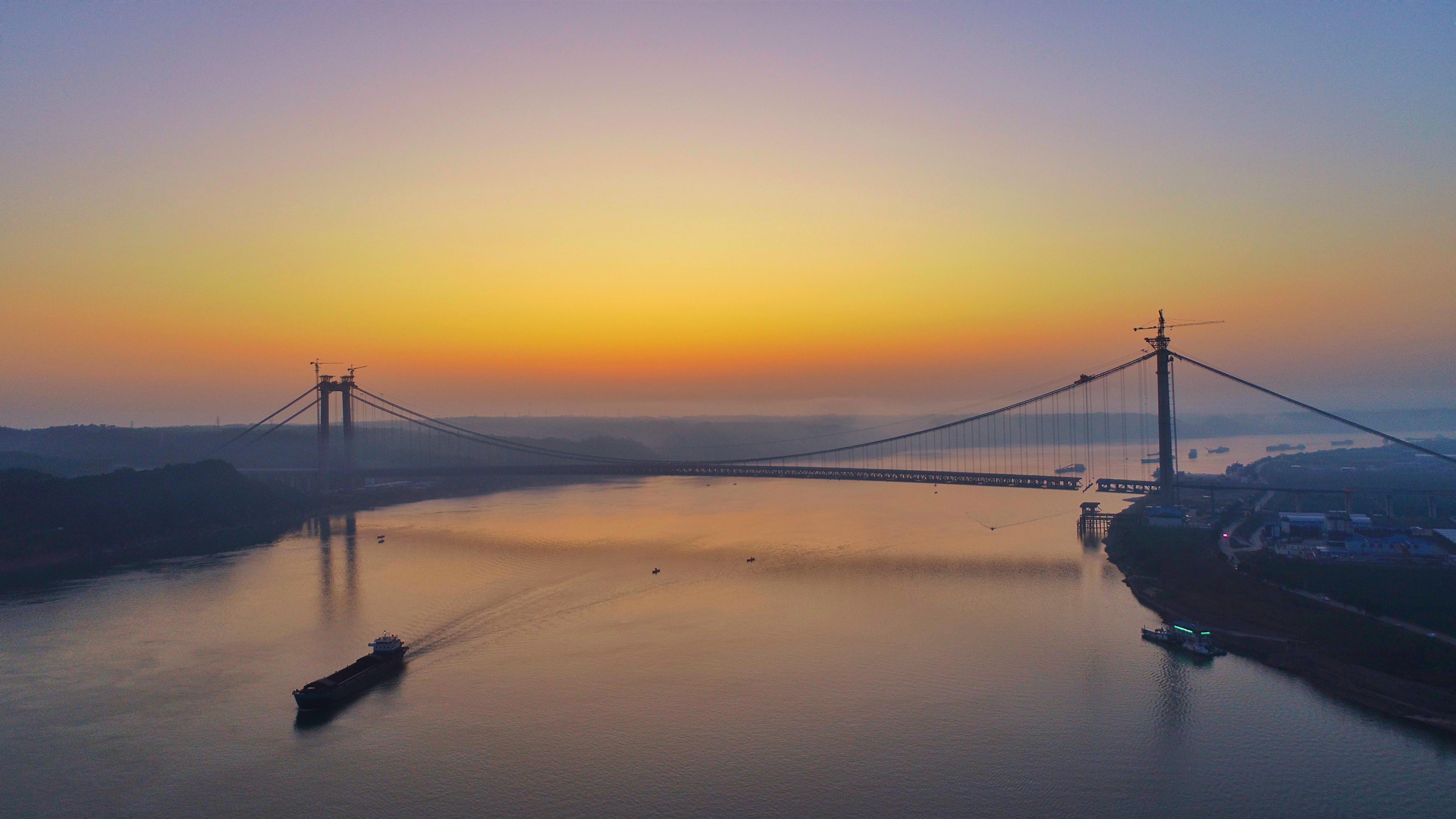 宜都長江大橋,又稱“宜都長江公路大橋”,是位于中國湖北省宜昌市的一座公路雙塔單跨鋼桁梁懸索橋,跨越長江,連接北岸枝江市白洋鎮和南岸宜都市陸城街道,是呼北高速公路宜昌至張家界段的控制性工程,也是湖北省“753”骨架公路網中規劃“縱6”的重要組成部分。大橋北接保康至宜昌高速公路,南連宜昌至張家界高速公路湖南段。大橋全長2,670.5米,按雙向六車道高速公路標準建設,設計行車速度100公里/小時,宜都長江大橋為主跨1000m的單跨懸索橋,主纜邊跨跨度分別為276m和296.5m。全橋設兩根主纜,橫向間距為36m,吊索與主纜在一個豎直平面內。大橋項目分兩個不同的標段,項目估算總投資約37.33億元人民幣,計劃建設工期為48個月。湖北路橋集團有限公司承建BY-2標的建設,2020年4月29月,大橋實現全線貫通。