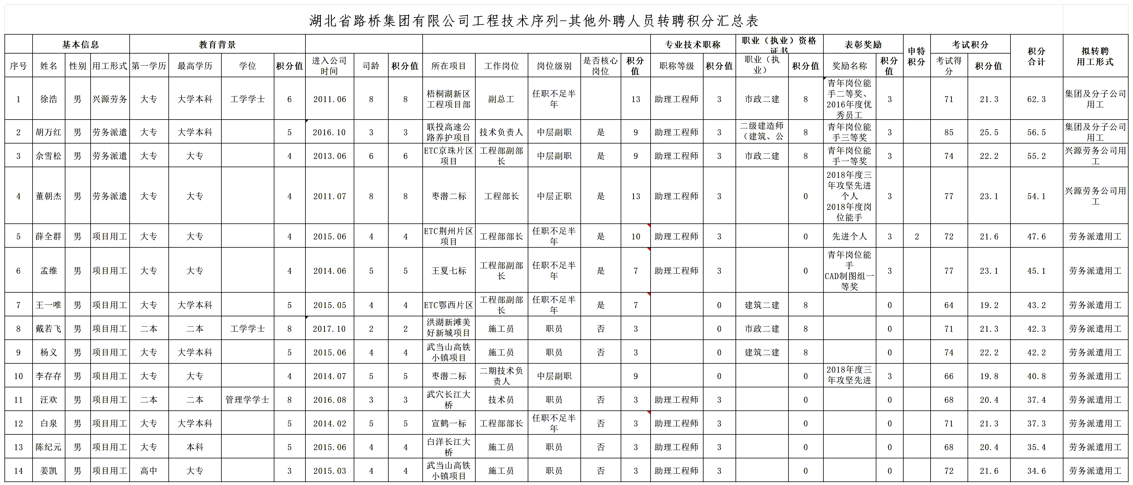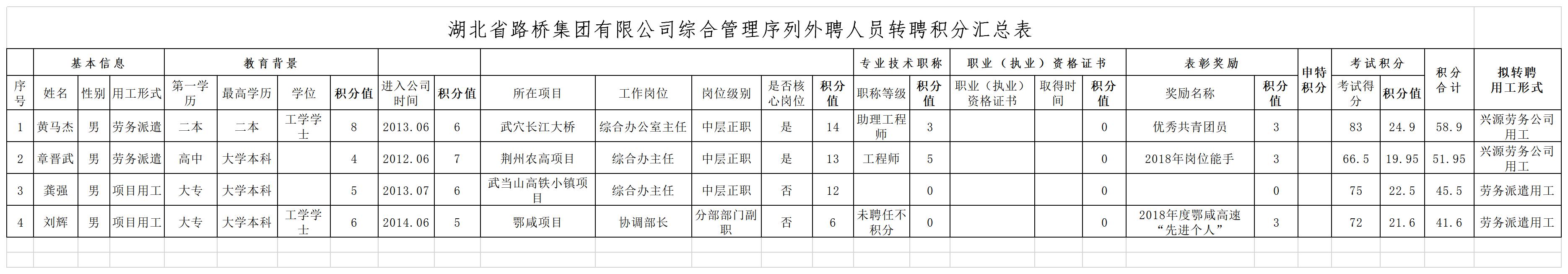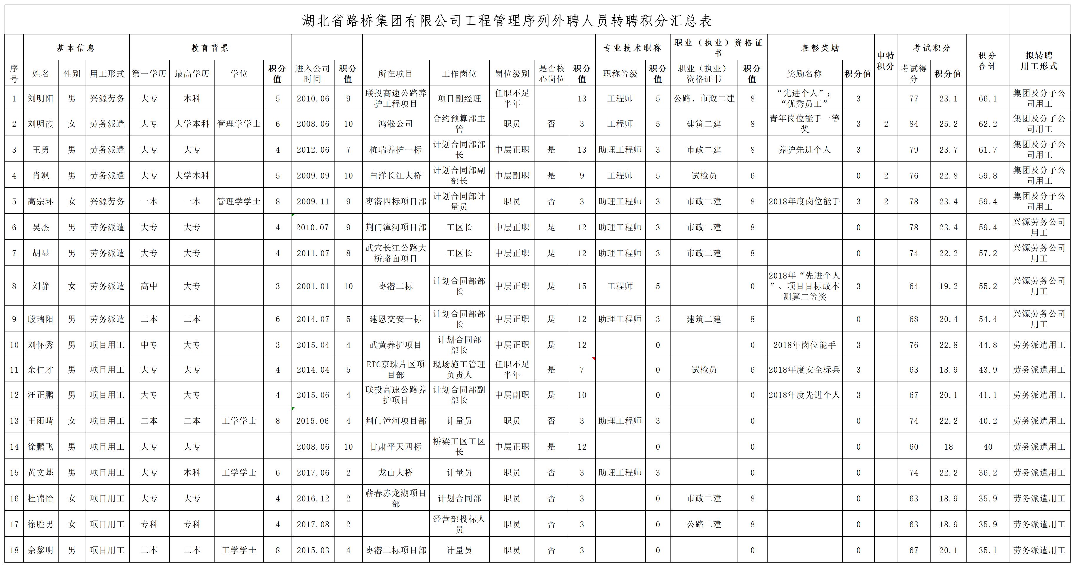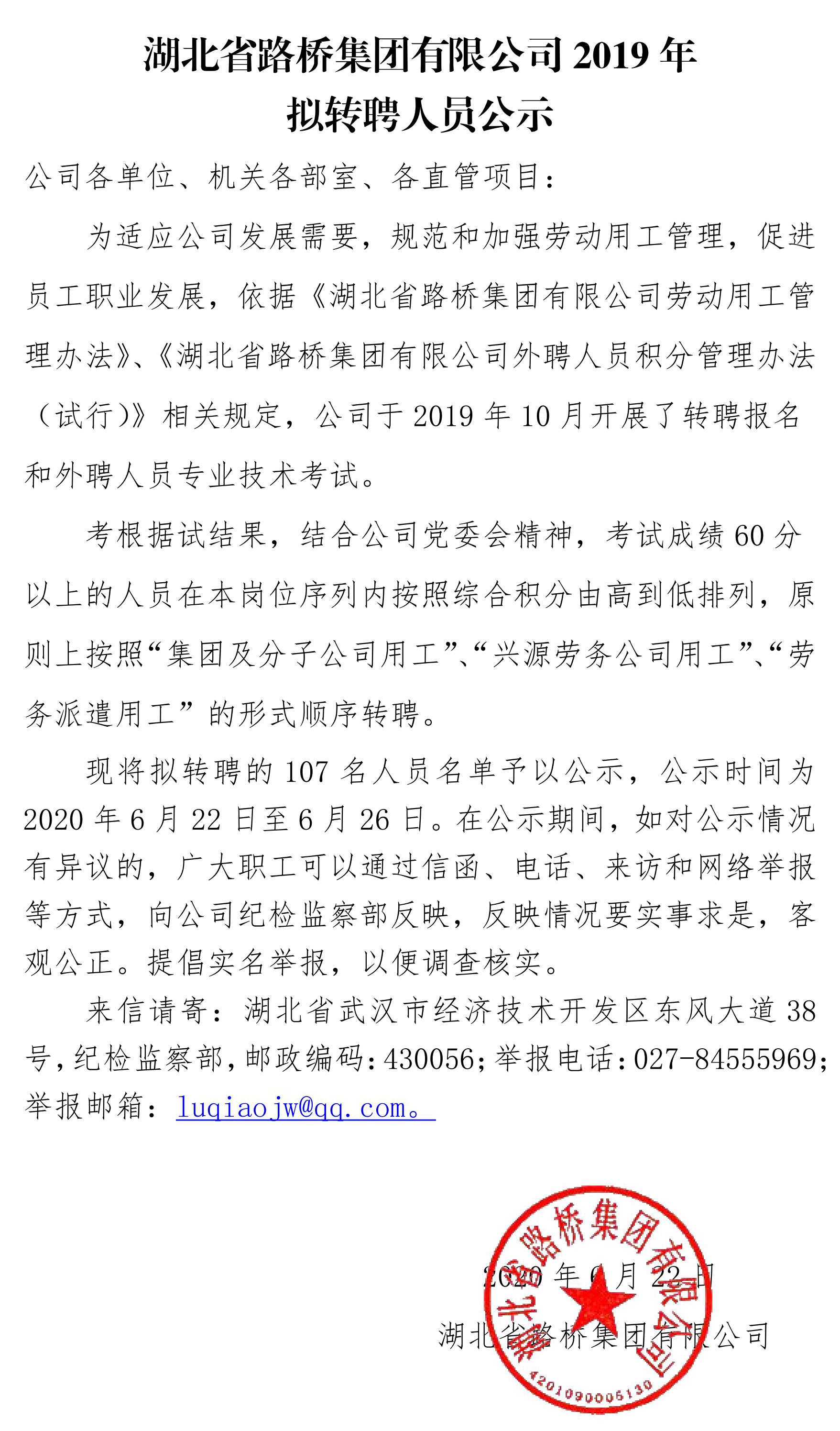 湖北省路橋集團有限公司2019年擬轉聘人員公示