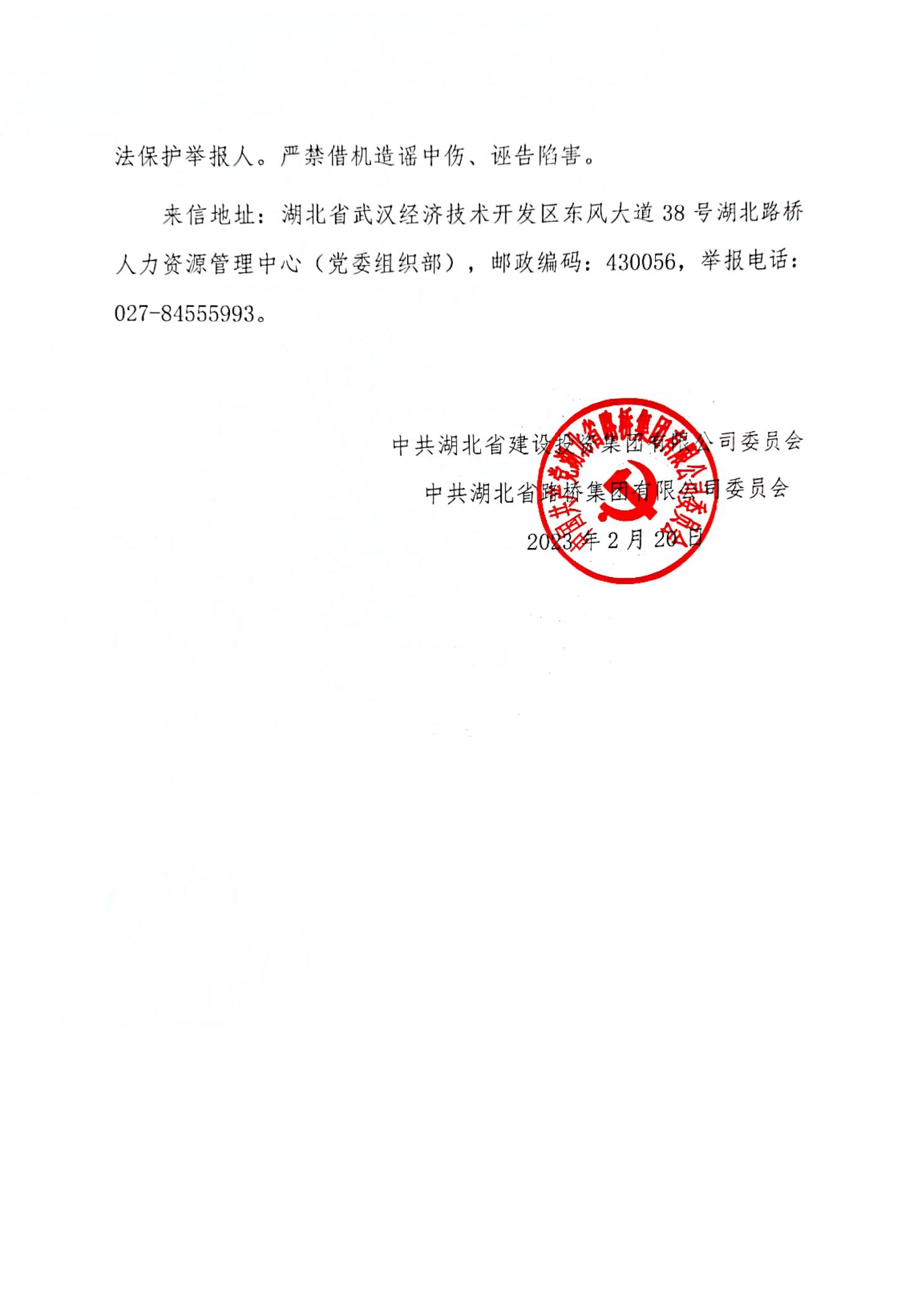 湖北省路橋集團有限公司2022年擬轉聘人員補充公示