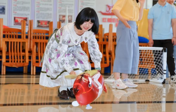趣味游戲環節,大家積極踴躍參與,限時釣粽子、魔方比大小、“趕雞入籠”接力賽、“一錘定音”砸氣球……現場歡呼聲、吶喊聲,此起彼伏,高潮迭起。