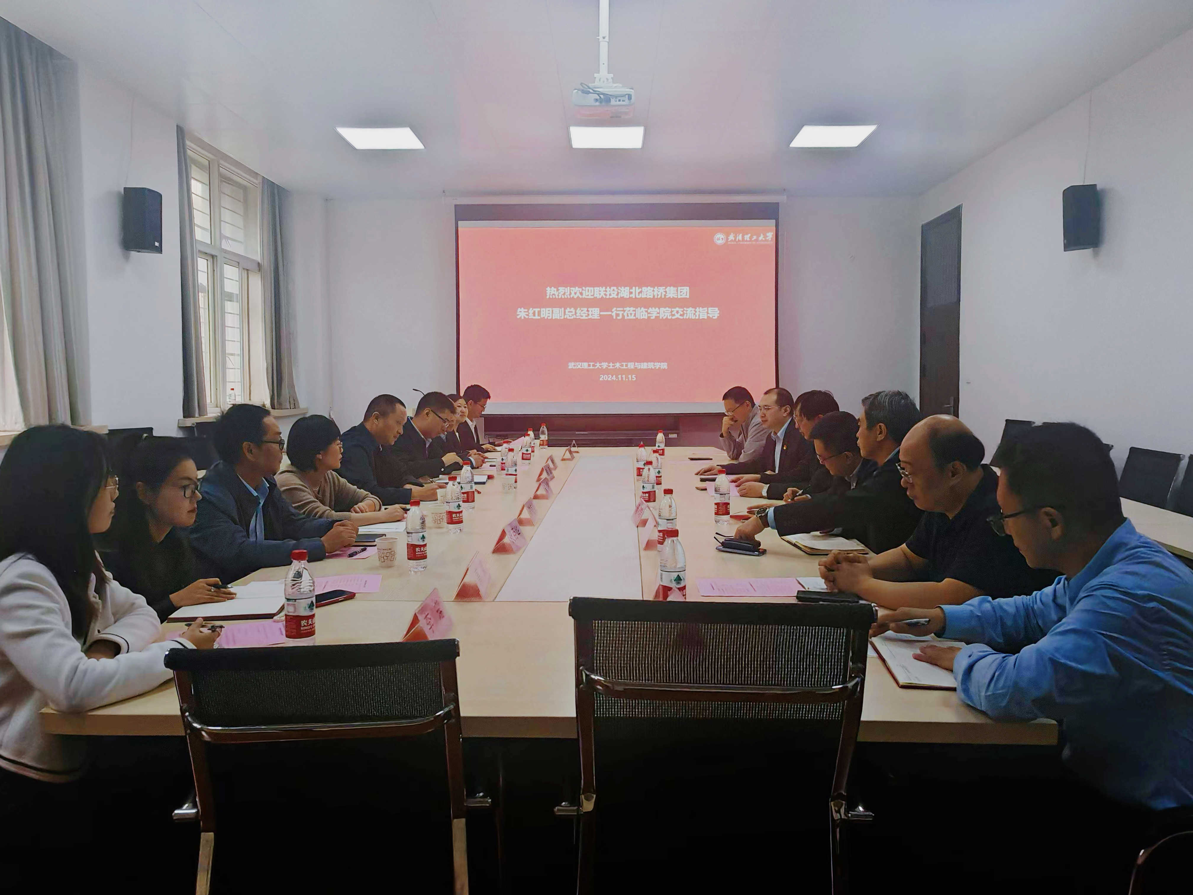 吳斌對(duì)湖北路橋一行的到來(lái)表示熱烈歡迎,并簡(jiǎn)要介紹了土建學(xué)院發(fā)展歷史、學(xué)科建設(shè)、人才培養(yǎng)、科技創(chuàng)新等最新情況。他表示,近年來(lái),學(xué)院在持續(xù)拓展科技成果轉(zhuǎn)化的新渠道、新途徑,湖北路橋作為省內(nèi)工程建設(shè)領(lǐng)域重點(diǎn)企業(yè),始終秉持開放合作的理念,積極與各高校建立“產(chǎn)學(xué)研”實(shí)踐基地。2018年,湖北路橋與武漢理工大學(xué)成功建立了“聯(lián)合人才培養(yǎng)實(shí)踐基地”,這一成果為雙方深化合作打下了堅(jiān)實(shí)的基礎(chǔ),當(dāng)前雙方共建“博士后創(chuàng)新實(shí)踐基地”和“卓越工程師”校企聯(lián)合培養(yǎng)項(xiàng)目,不僅是順勢(shì)而為,更是對(duì)既有合作模式的深化與升級(jí),雙方要攜手促進(jìn)學(xué)術(shù)研究與產(chǎn)業(yè)實(shí)踐的深度融合與協(xié)同發(fā)展,不斷推動(dòng)行業(yè)技術(shù)進(jìn)步和產(chǎn)業(yè)升級(jí),實(shí)現(xiàn)互利共贏的新局面。