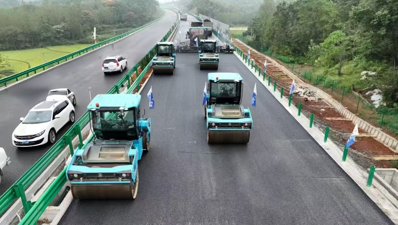 技術(shù)負(fù)責(zé)人徐小龍介紹,本次無人駕駛瀝青攤鋪作業(yè)面全長10公里,寬24米,共計(jì)約24萬平米,設(shè)備通過感知模塊融合北斗高精度定位、慣性導(dǎo)航與障礙物識(shí)別技術(shù),形成智能動(dòng)態(tài)感知、智能決策、閉環(huán)調(diào)節(jié)碾壓參數(shù),對(duì)機(jī)械間距、瀝青溫度控制、攤鋪速度與均勻性、攤鋪厚度、碾壓工藝及接縫處理等環(huán)節(jié)進(jìn)行全過程管控,實(shí)現(xiàn)了“毫米級(jí)”超高精度作業(yè)。“施工人員只需把施工路段的路面標(biāo)高、寬度、碾壓遍數(shù)、行駛軌跡等參數(shù)提前設(shè)置好,輸入到電腦控制系統(tǒng),就能實(shí)現(xiàn)自動(dòng)控制攤鋪機(jī)攤鋪,壓路機(jī)也會(huì)按照設(shè)定的壓實(shí)軌跡進(jìn)行碾壓?!毙煨↓堈f。