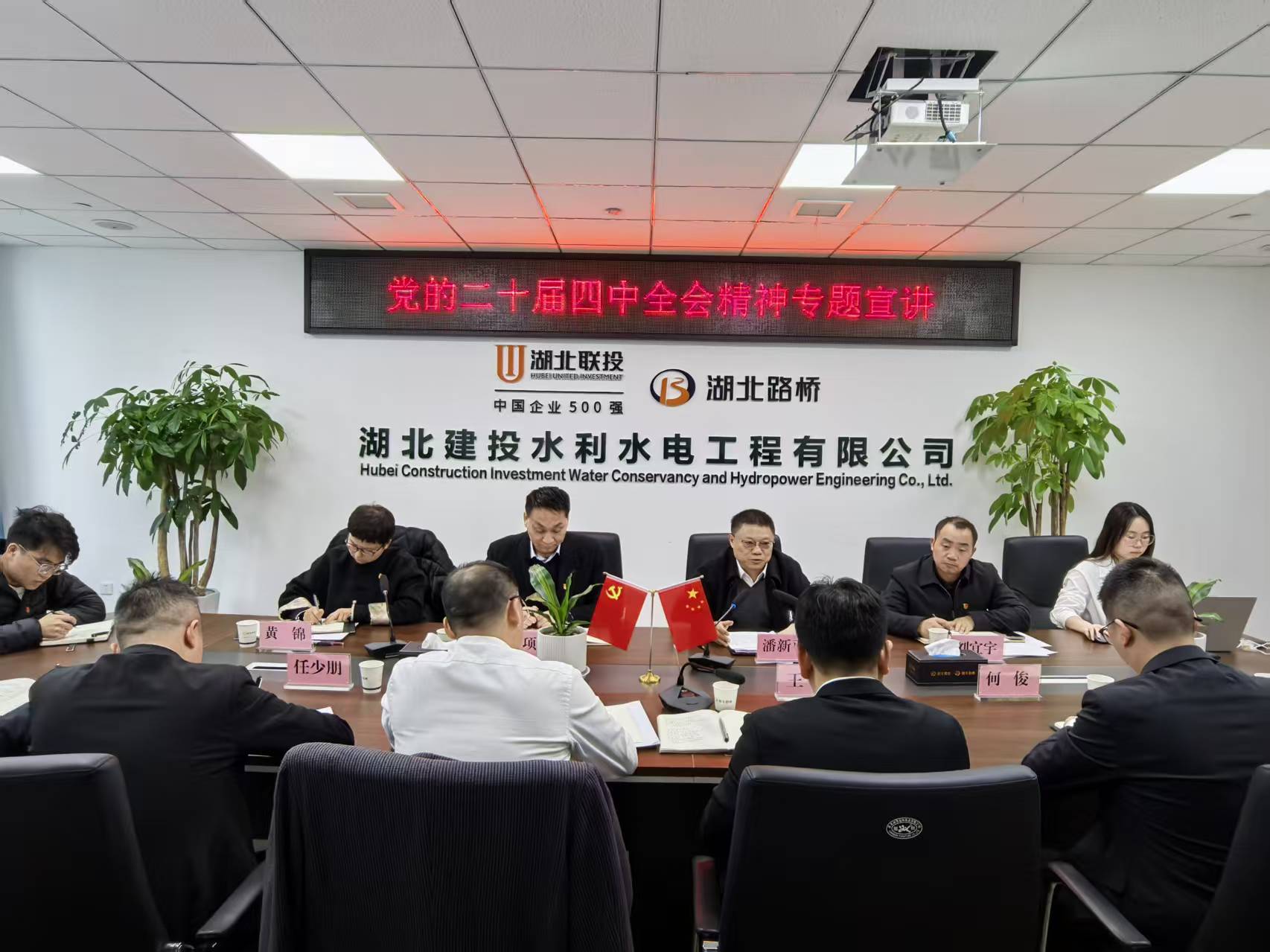 12月30日,湖北路橋黨委書記、董事長潘新平赴水利公司講授學(xué)習(xí)貫徹黨的二十屆四中全會精神專題黨課并開展工作調(diào)研,黨建工作部(黨委辦公室、董事會辦公室)、財(cái)務(wù)管理部(資金中心)、科學(xué)技術(shù)質(zhì)量部(數(shù)字信息中心)負(fù)責(zé)人一同參加。