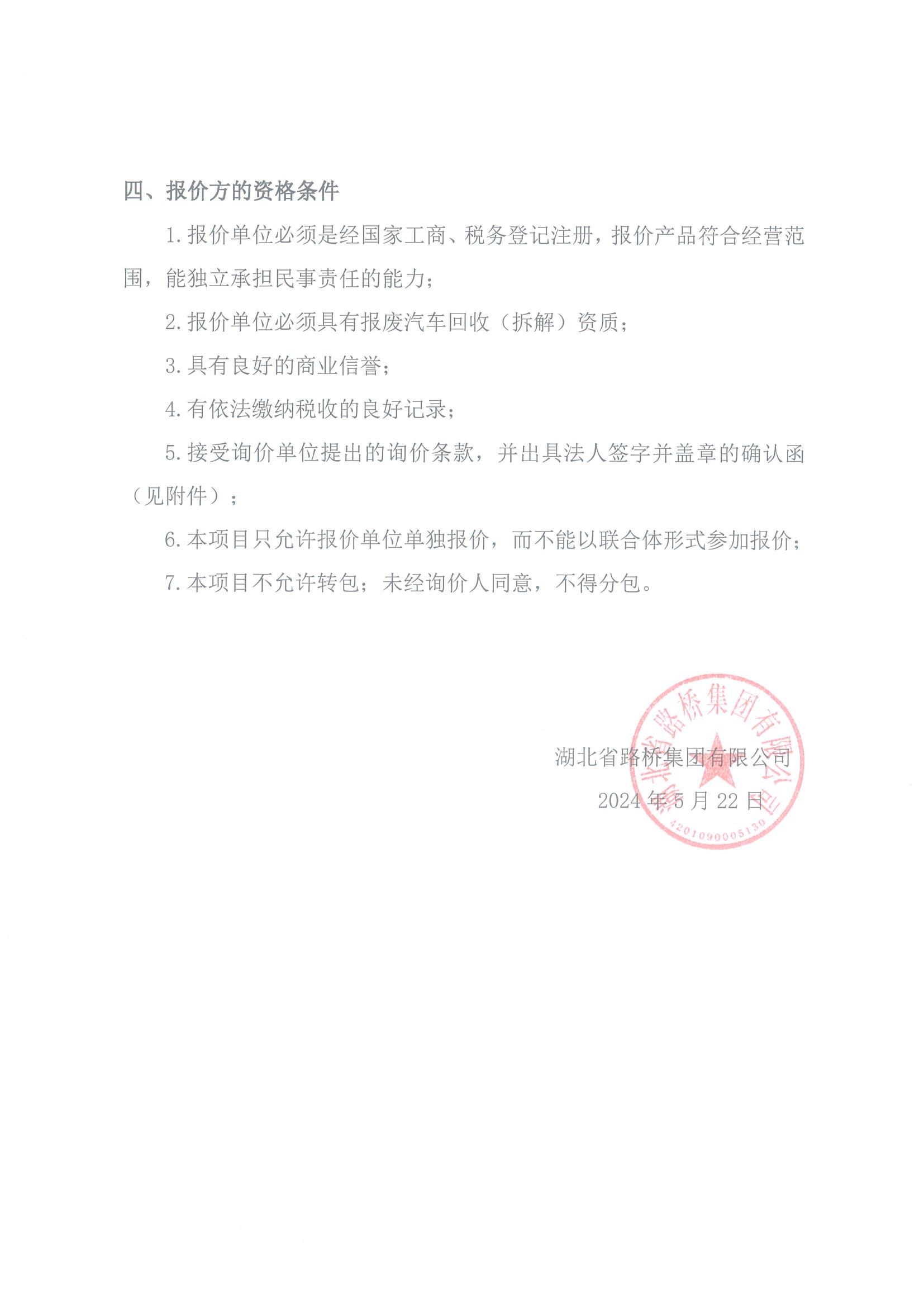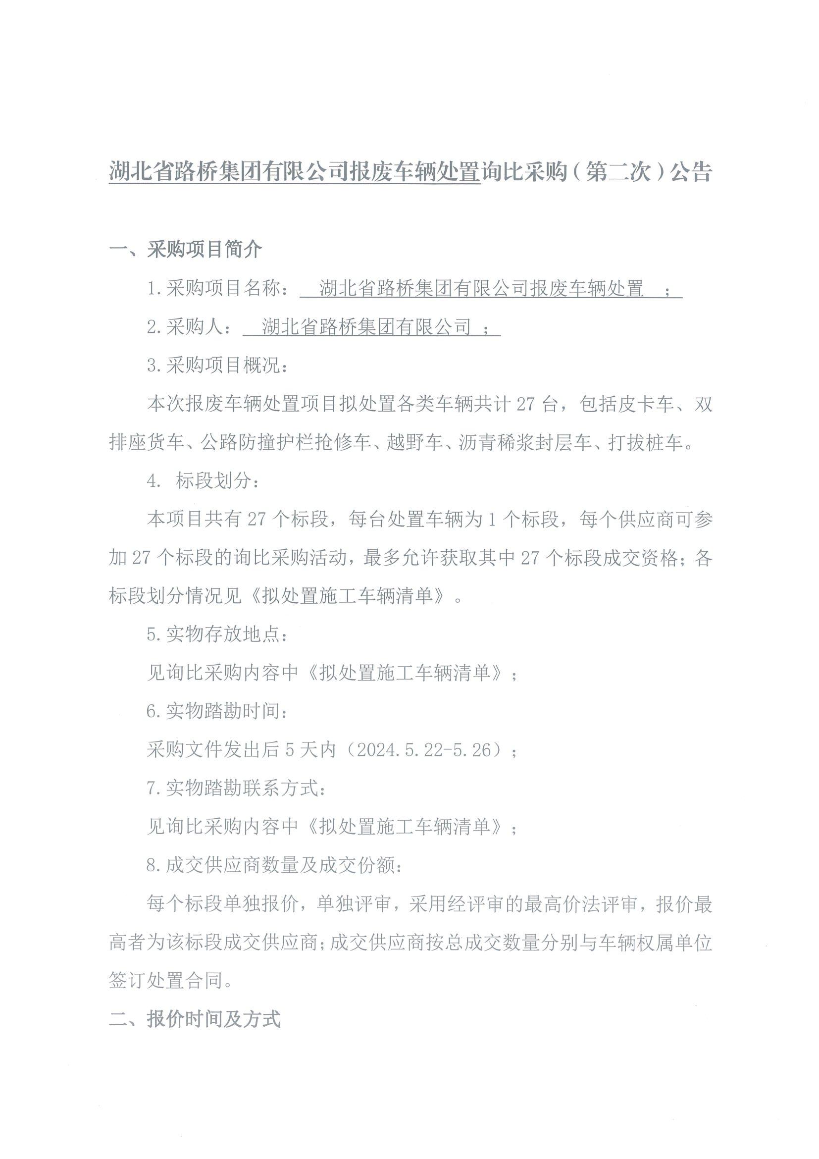 湖北省路橋集團(tuán)有限公司報(bào)廢車輛處置詢比采購(gòu)(第二次)公告